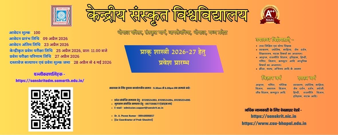 प्राक् शास्त्री के पाठ्यक्रम के शुल्क तिथि एवं ऑनलाइन पंजीकरण के सम्बन्ध में